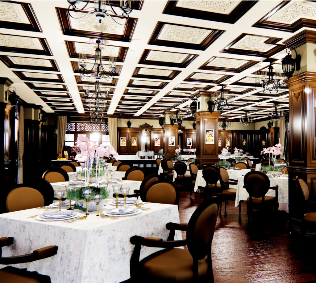 The pavilion-inspired emblem signifies gathering, elevation, and celebration, expressing the bar’s spirit as an exclusive and refined social sanctuary.