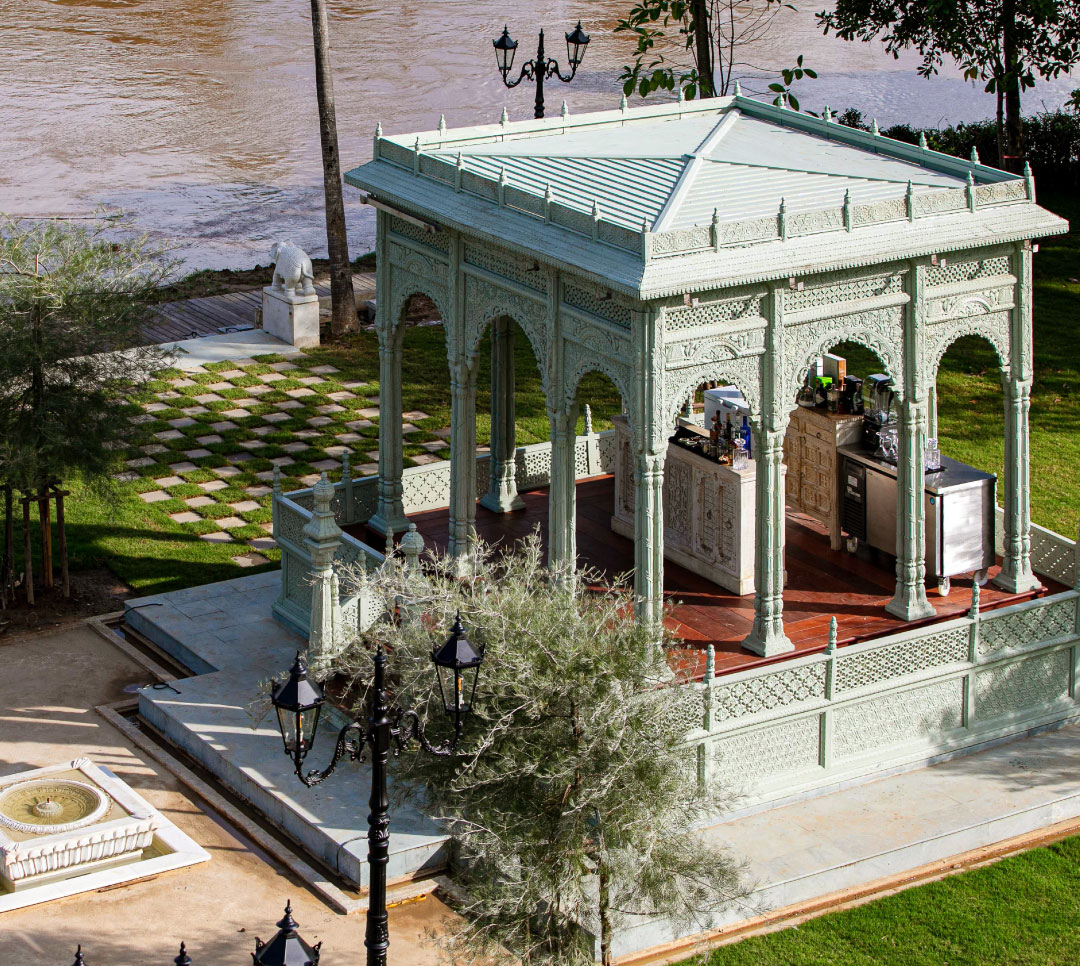 Experience riverside sophistication at Chattri, a pavilion-inspired bar where crafted cocktails and calm conversations define the night.
